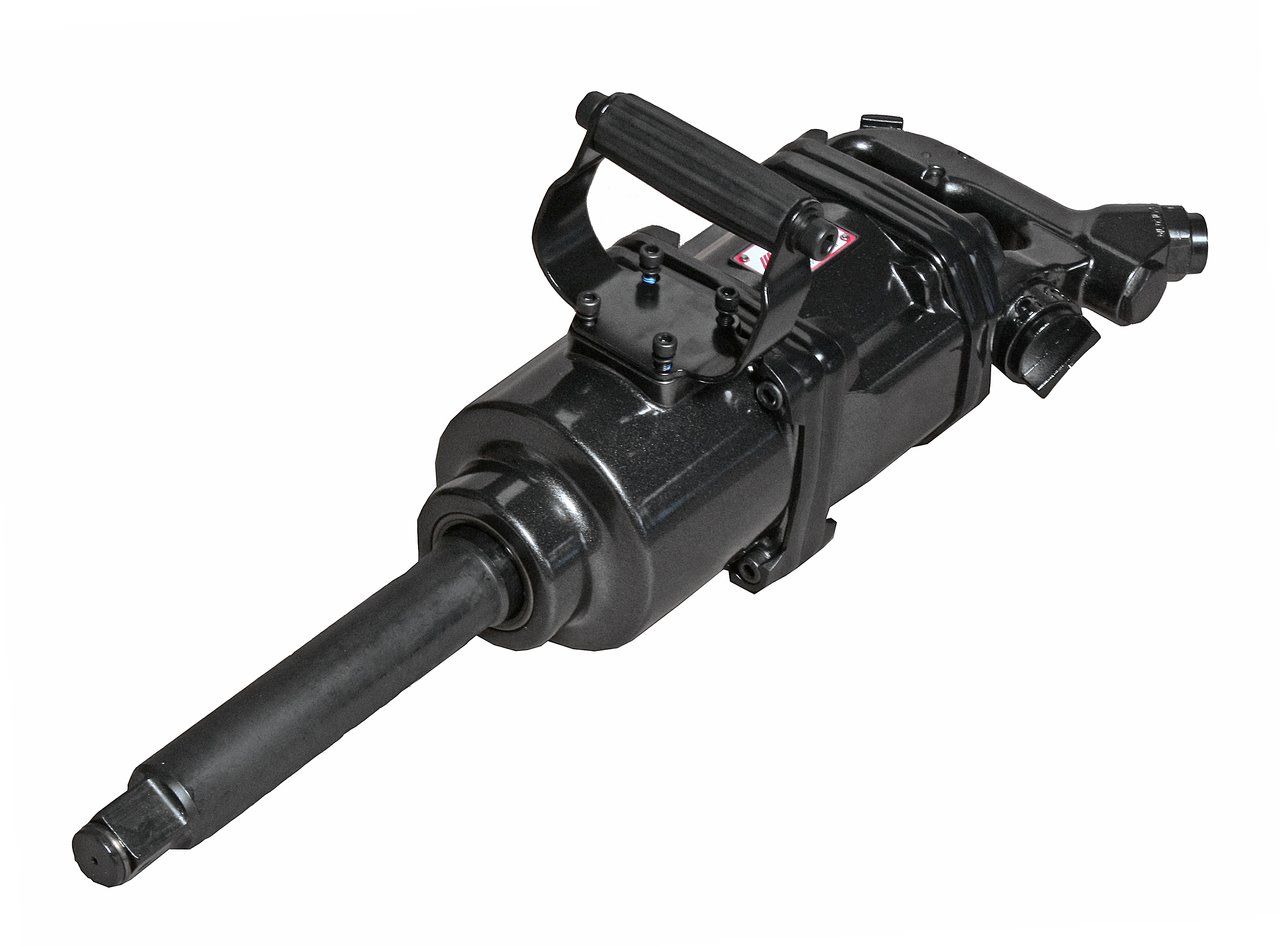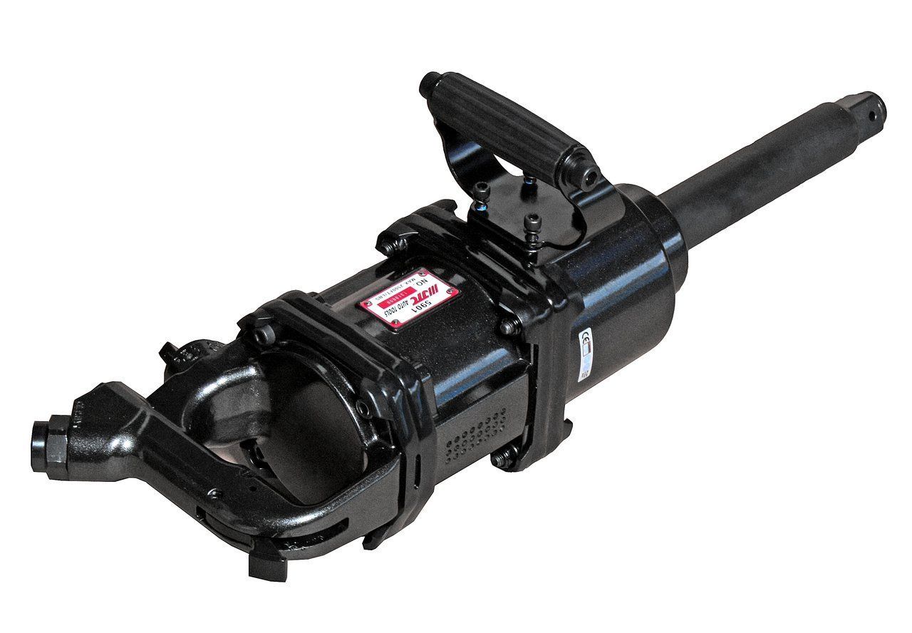 Ударный пневмогайковерт JTC 5901 применяется для установки крепежа размером 50 мм. Массивная конструкция обладает высоким запасом прочности. Дополнительная рукоять позволяет надежно удерживать инструмент в руках в процессе эксплуатации. Для стабильной работы модели давление подаваемого воздуха должно равняться 90 PSI.