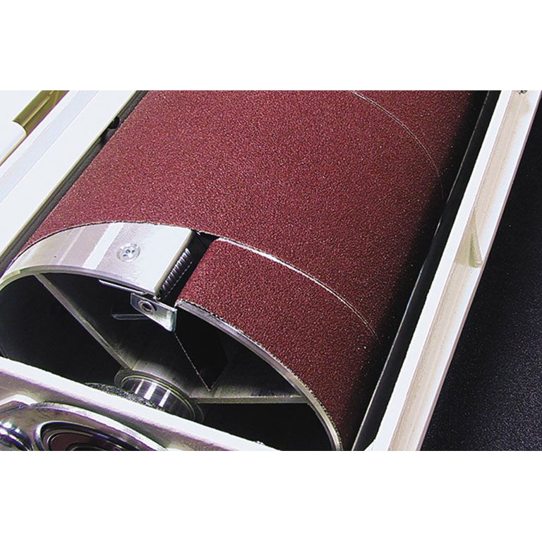 Расходным материалом служат шлифовальные ленты шириной 75 мм, которые можно выбрать в ассортименте Jet. Запатентованное быстрозажимное устройство на внутренней стороне барабана удерживает шлифовальную ленту с одной стороны, в то время как пружинный механизм натягивает её с другой.