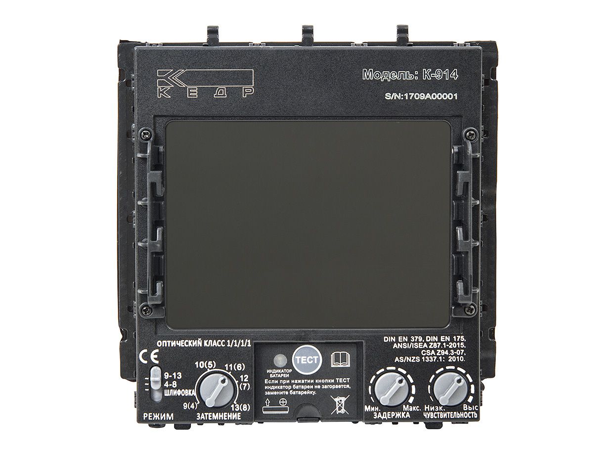 - Лучшие в линейке КЕДР оптические параметры 1/1/1/1 позволяет применять маску для всех видов сварки