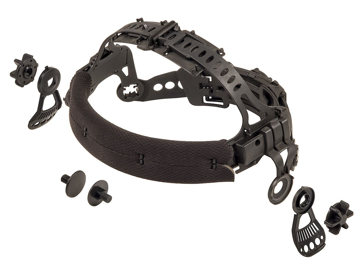 Сварочная маска оснащена специальным механизмом поворота наголовника, снижающим нагрузку на голову и шею сварщика при поднятой маске, что делает работу сварщика более комфортной.