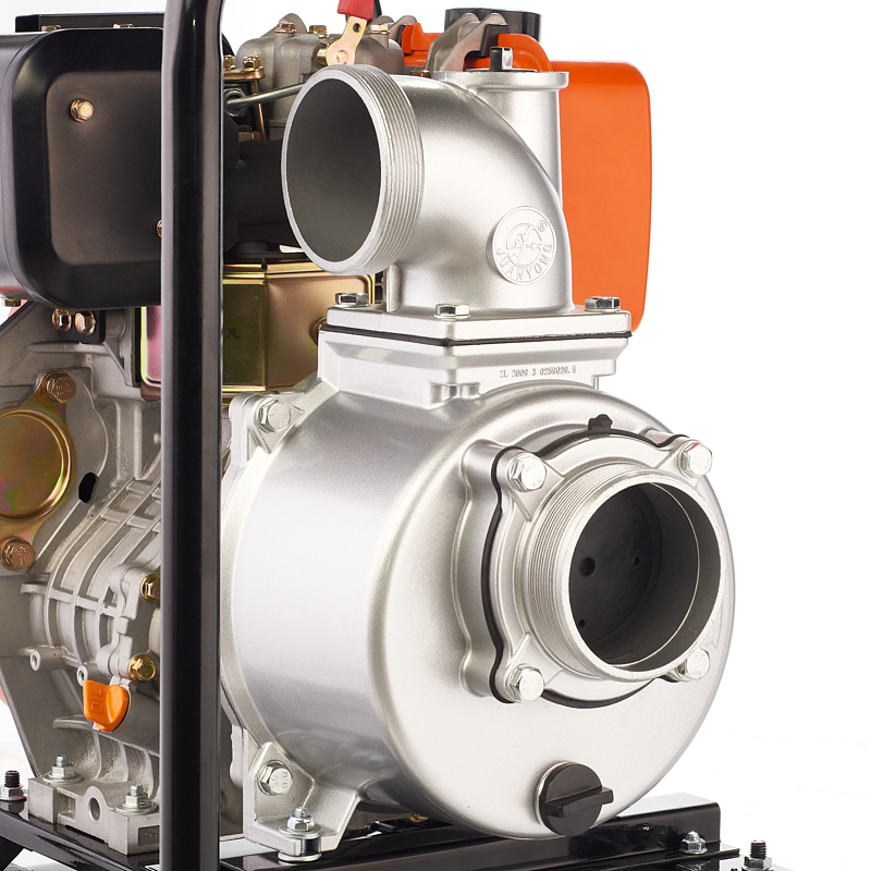 Дизельная мотопомпа для перекачки чистой воды (откачка колодца, речной воды, пруда) двигатель 186FA Макс. мощность 8,8 лс, Производительность 90 м³/час , напор 29 м, D вх/вых 100 мм, размер частиц 1,5 мм, бак 5,5 л.