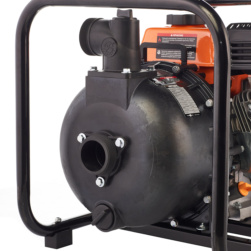 Бензиновая мотопомпа для перекачки соленой воды, жидких удобрений и химических реагентов, PH 4-11. Мощность 6.0 лс, Производительность 30 куб м/час, напор 25 м, двигатель AP170F, D вх/вых 50 мм, бак 3.6 л.