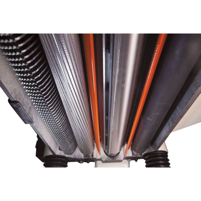 В поверхность рабочего стола вмонтированы нижние вальцы для облегчения подачи заготовки. Они установлены на эксцентриковых осях, что допускает простую, быструю и точную их регулировку по высоте вылета. На верхней части станка смонтированы два ролика для обратной подачи обработанной заготовки.