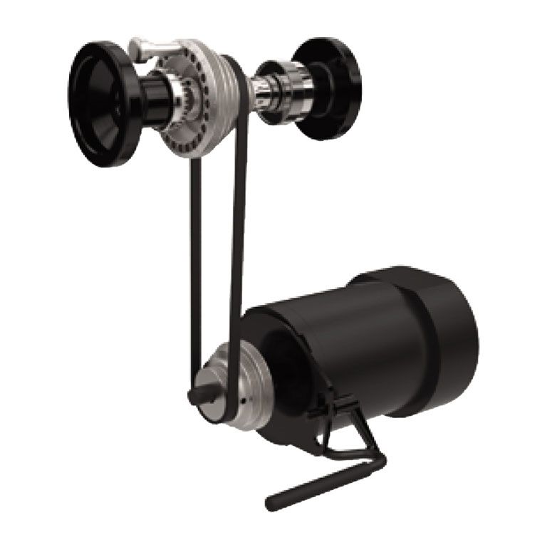 Станок оборудован асинхронным мотором, который работает с постоянной частотой вращения (1400 об/мин). Для выбора скорости шпинделя меняют положение поликлинового ремня (предусмотрено шесть пар шкивов). Эта операция занимает минимум времени и производится без использования вспомогательных инструментов.