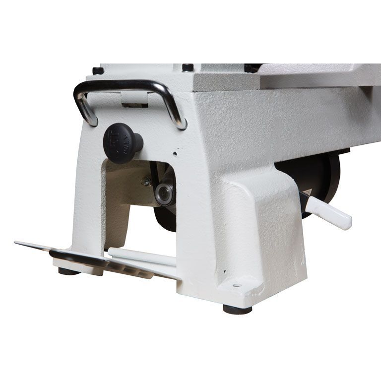 Предусмотрено шесть скоростей вращения шпинделя, их меняют перестановкой поликлинового ремня – операция простая и не требует вспомогательного инструмента. Также проста установка планшайбы или патрона – шпиндель блокируют при помощи делительного приспособления. Для регулировки задней бабки или подручника ослабляют эксцентриковые фиксаторы. Станок укомплектован удобными выдвижными ручками для переноски и лампой подсветки рабочей области.